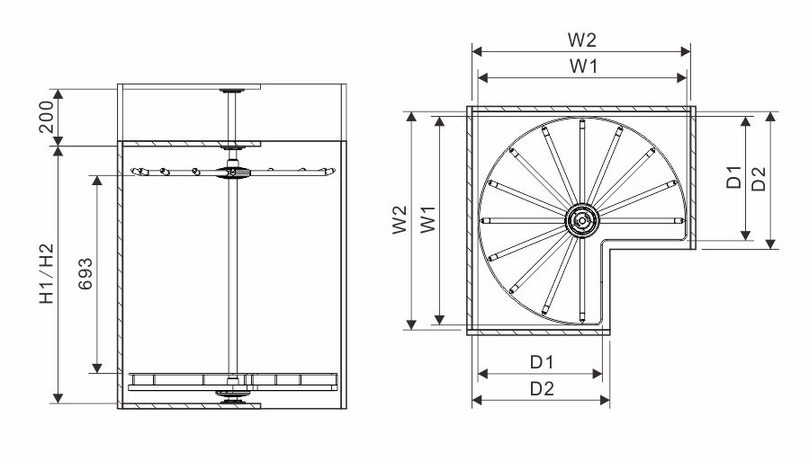 | 型號 | 柜體規格 | 外觀尺寸 寬(W1)x高(H1)x深(D1) | 柜體內空 寬(W2)x高(H2)x深(D2) |