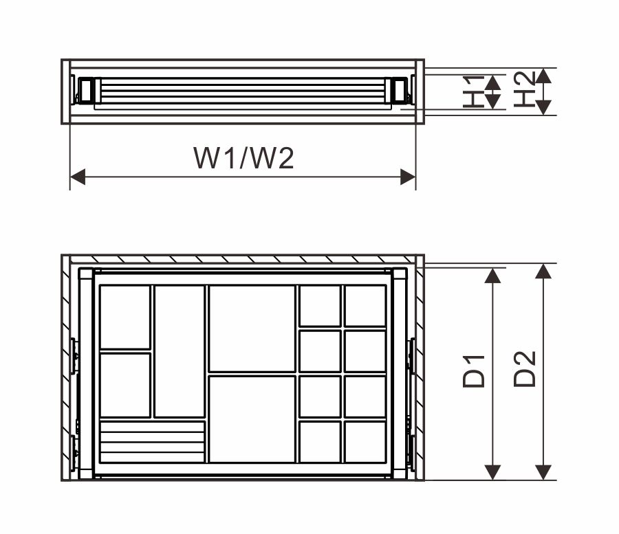 | 型號 | 柜體規格 | 外觀尺寸 寬(W1)x高(H1)x深(D1) | 柜體內空 寬(W2)x高(H2)x深(D2) |