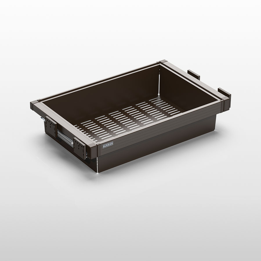 采用高純度鋁合金框架,連接件采用優質 ABS工程塑料,產品結實牢固。采用優質隱藏式阻尼滑軌,推拉順滑。框架寬度可調,適應不同柜體寬度。接縫遮蓋處理,外觀精致美觀。采用快速拆裝結構,方便安裝和清理保養。