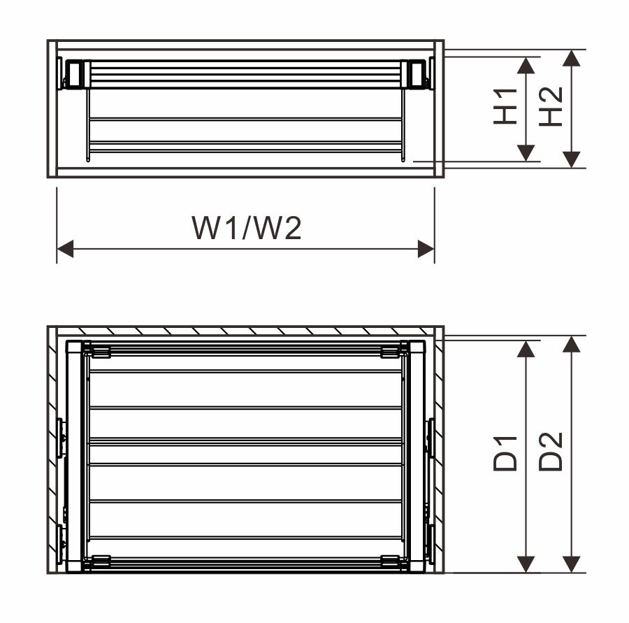 | 型號 | 柜體規格 | 外觀尺寸 寬(W1)x高(H1)x深(D1) | 柜體內空 寬(W2)x高(H2)x深(D2) |