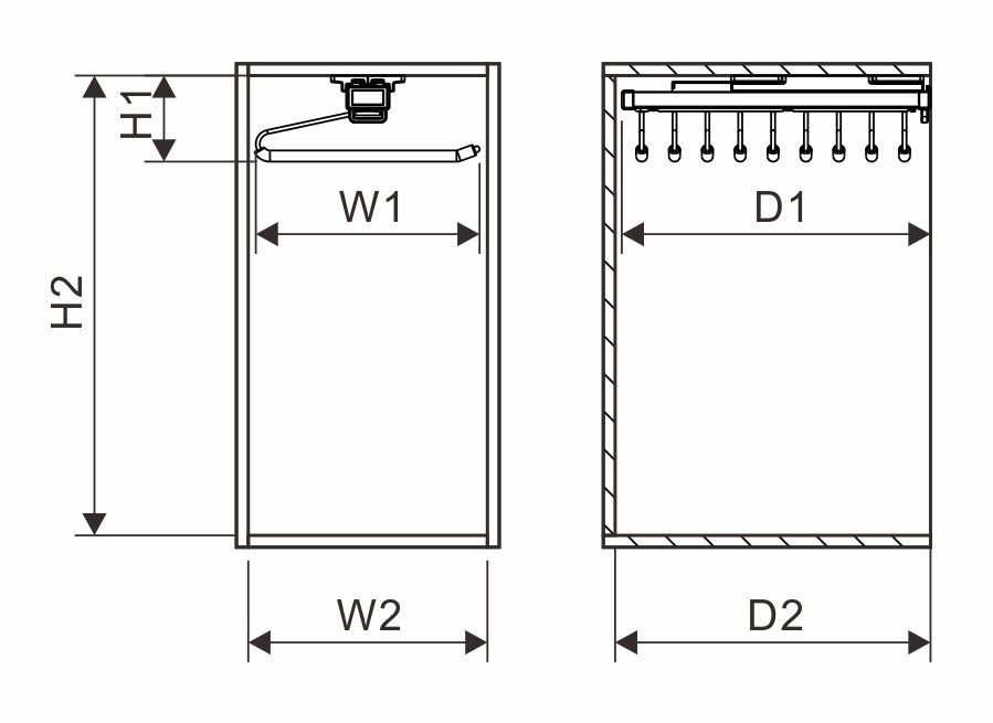 | 型號(hào) | 柜體規(guī)格 | 外觀尺寸 寬(W1)x高(H1)x深(D1) | 柜體內(nèi)空 寬(W2)x高(H2)x深(D2) |