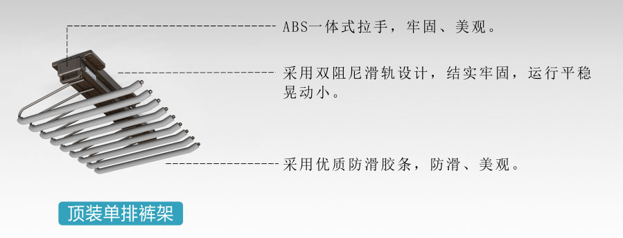 推拉褲架,褲子垂掛存放,防折皺,方便存取。